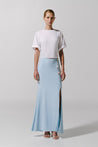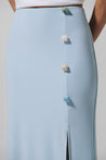 Introducing the "Uli Maxi Skirt" in Ciel – a maxi skirt with embellishments, a side slit, and an elastic waistband for a comfortable fit. Fully lined for coverage. Pair with the matching Uli Top for a coordinated look.