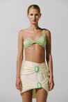 Introducing the "Corriente Mini Skirt" in White Sage – this mini pareo features delicate Baobab-shaped details and ruched accents for a chic, flattering look. The lined design ensures comfort, making it an ideal piece to enhance your style for laid-back, sophisticated moments.