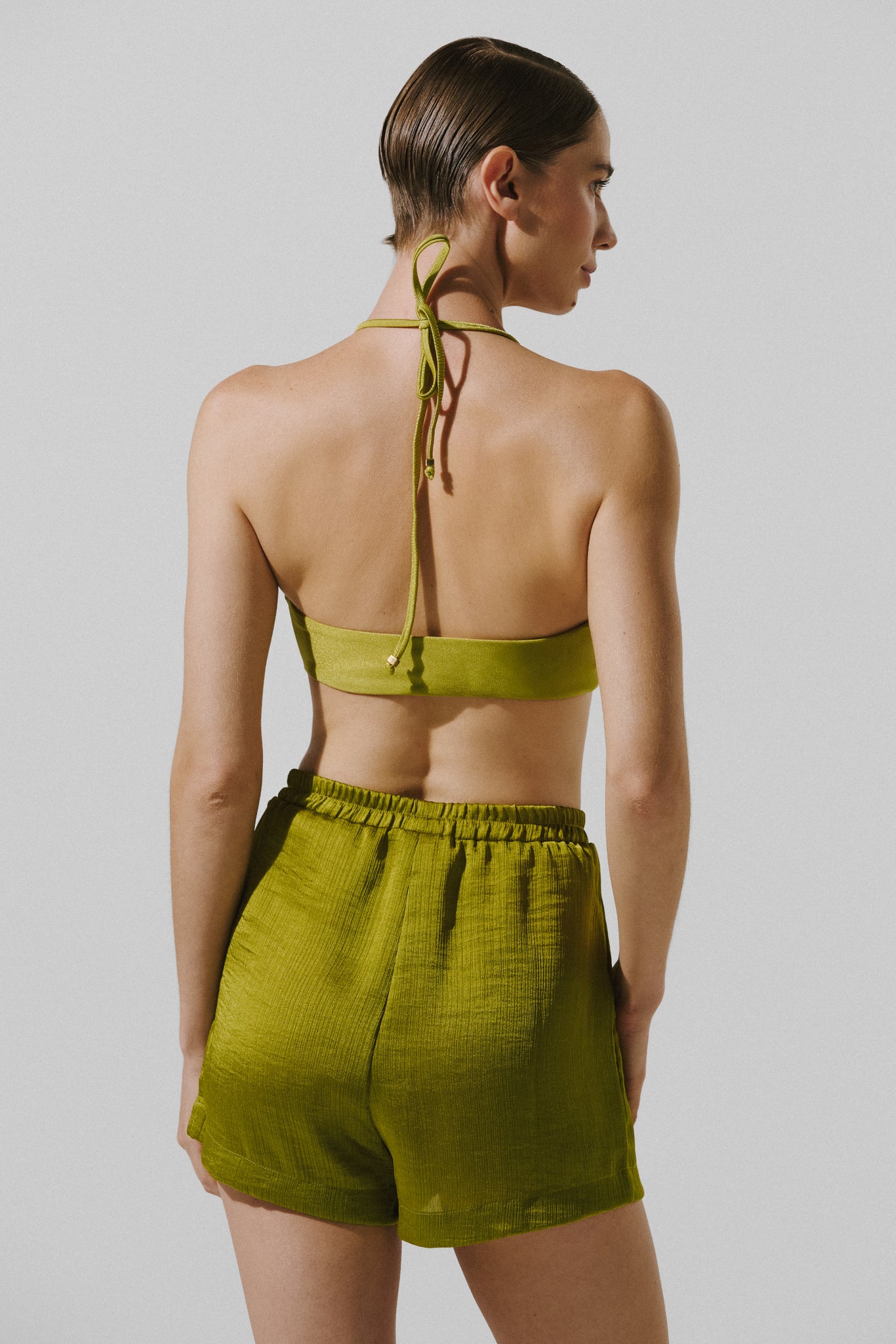 Introducing the "Gia Shorts" in Pistachio – these shorts combine comfort and style with their elastic waistband and minimalist design. Perfect for relaxed days or pairing with statement pieces, they offer a versatile foundation for effortlessly chic and casual outfits.