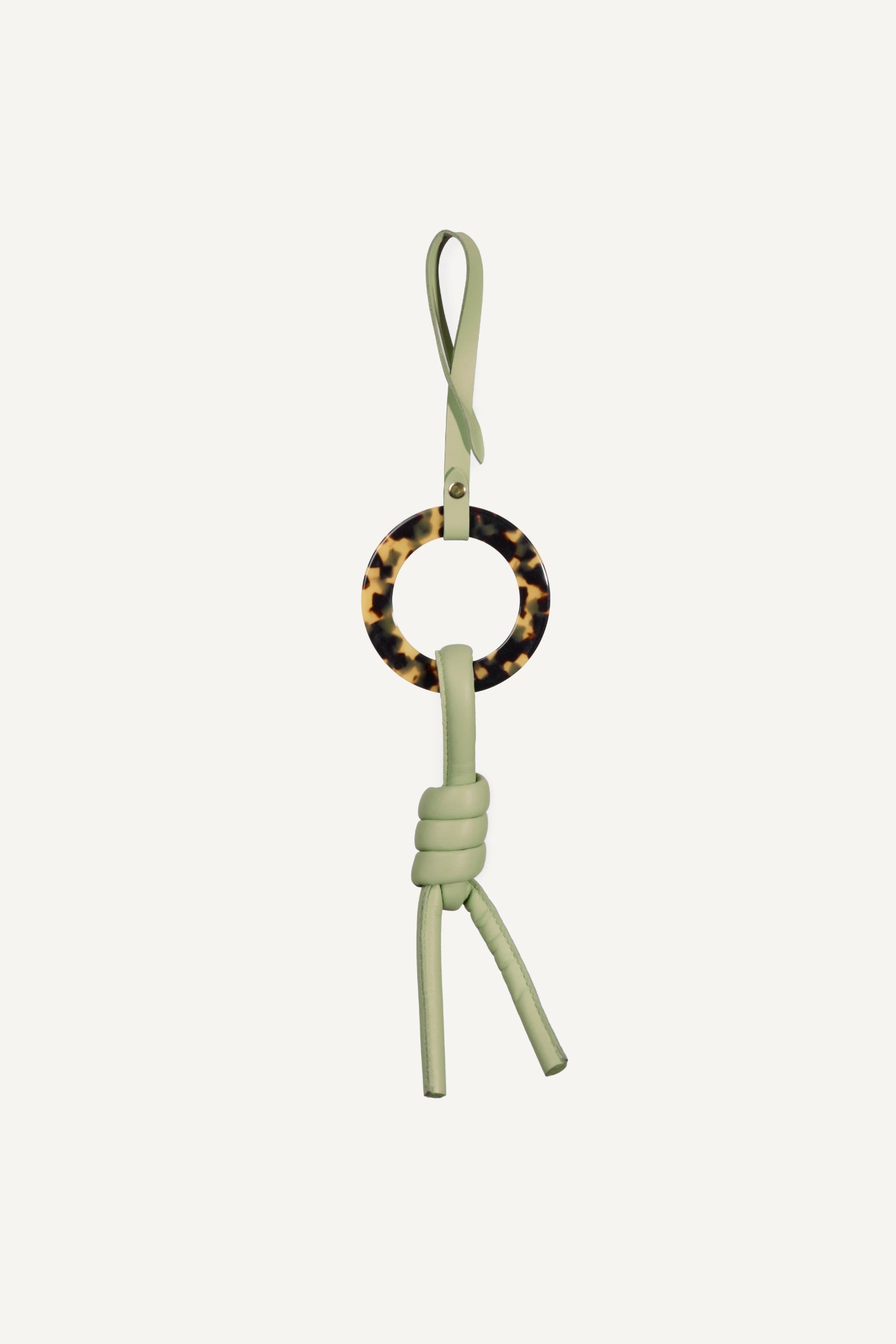 Charm crafted in Green leather with a tortoiseshell resin ring.