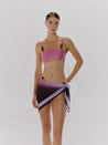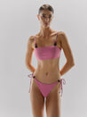 Introducing the "Alice Bikini Top" in Blush – a bikini top with a square neckline, lined design, and added wire and padding for support. The embellished straps add a unique touch. Pair with the matching Alice Bikini Bottom for a complete look.