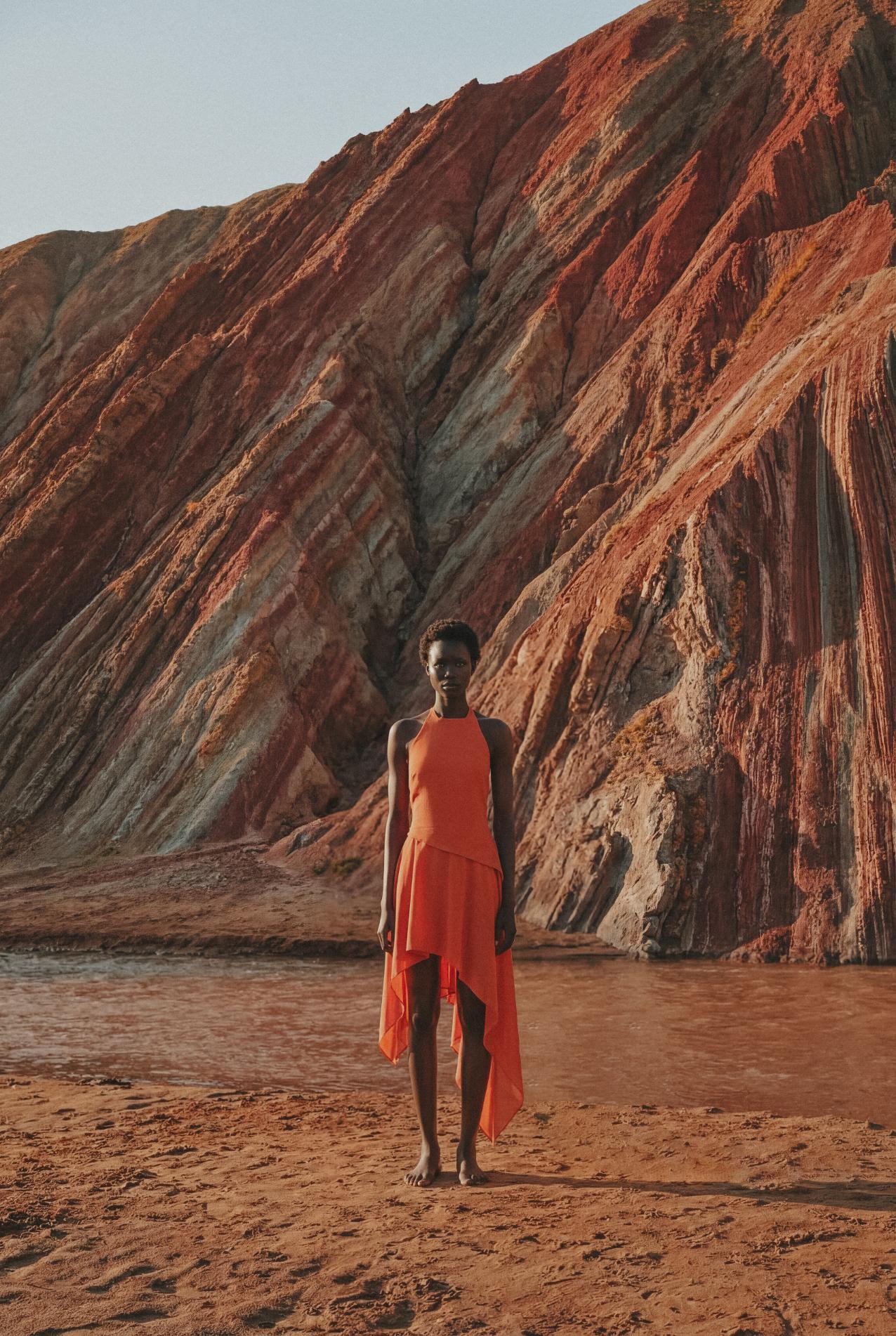 Introducing the “Lorenza Mini Dress” in Mandarina – a halter neckline silhouette designed to enhance the figure with effortless allure. Featuring an open back with self-tie straps and a cascading detail that adds fluid movement. Tailored with darts at the top for subtle structure and finished with an asymmetrical hem for a modern edge. Completed with a back zipper closure, partial lining, and a flattering mini length.