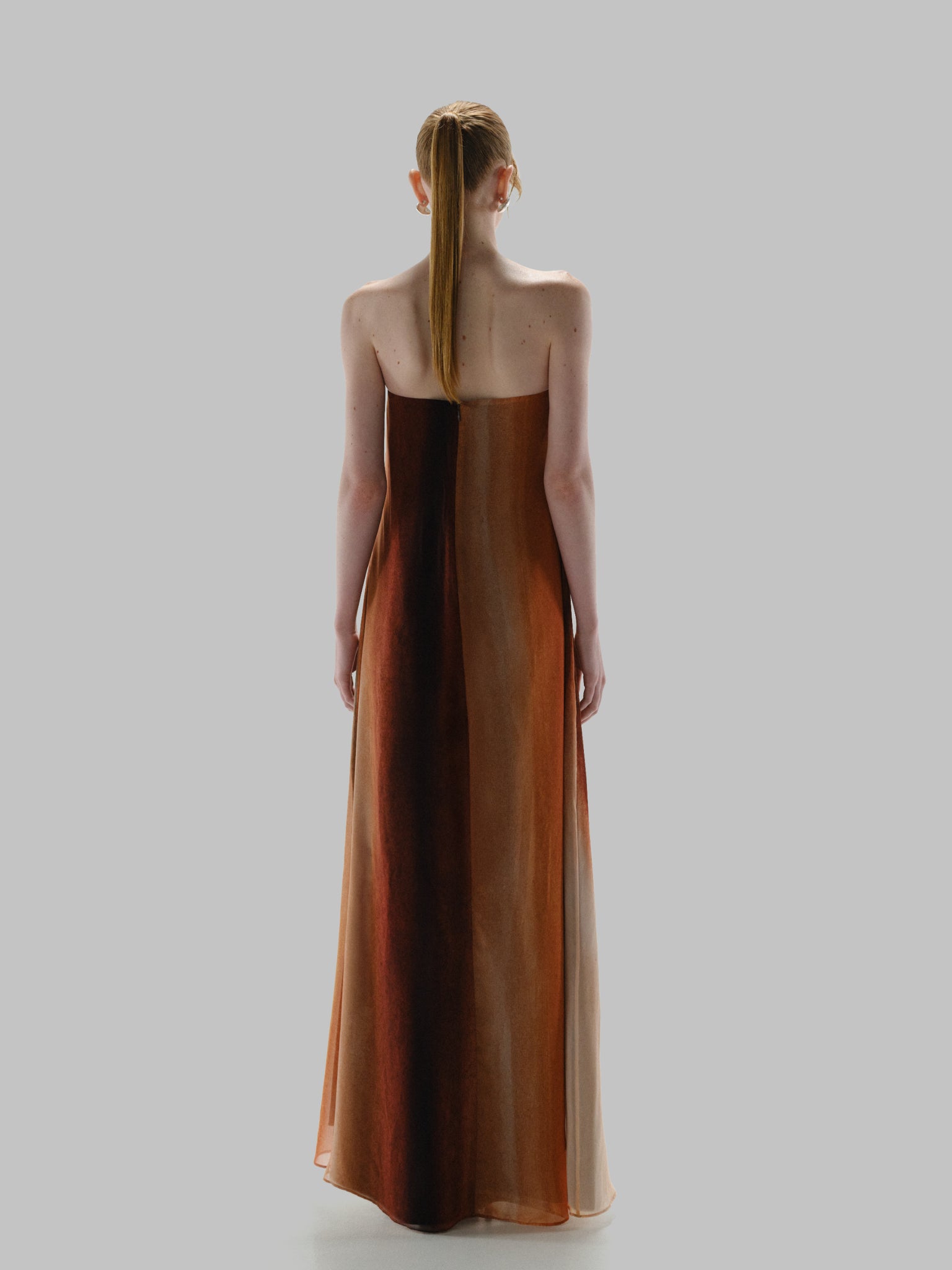 Introducing the “Nara Maxi Dress” in Tierra Inca – a strapless silhouette designed with darts at the top for a flattering, structured fit. Features silicone elastic at the top for added support and a secure feel. Finished with a back zipper closure, fully lined construction, and an elegant maxi length.