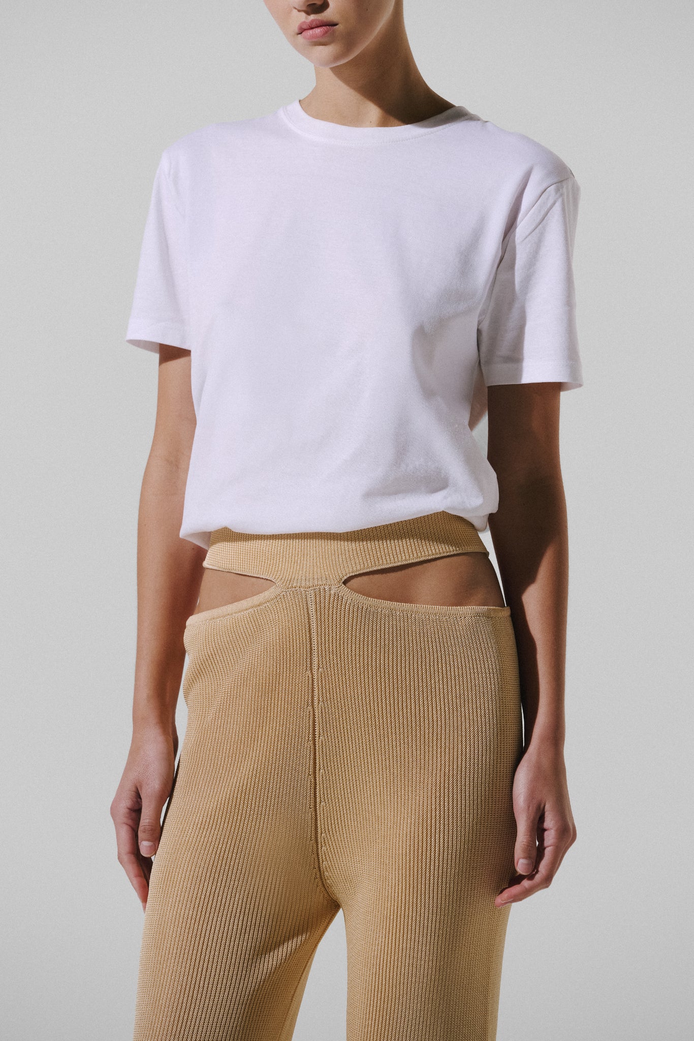 Introducing the "Irina Pants" in Champa–a - Designed in a champagne-hued ribbed knit, these piece are a high-rise flared pant with thoughtful cutouts at the hips that display a hint of skin. Pair it with the "Irina Top" in Champa–a- Êan asymmetrical off-the-shoulder cropped top that pairs seamlessly with the pants, creating a beautiful, eye-catching look.