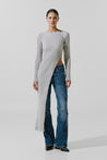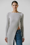 Introducing the "Masaki Top" in Plata – this long-sleeved, ribbed top features a round neckline and a side slit that extends from the waist to the ankle. Its rich color and sleek design offer both comfort and style, making it a versatile addition to any wardrobe.