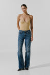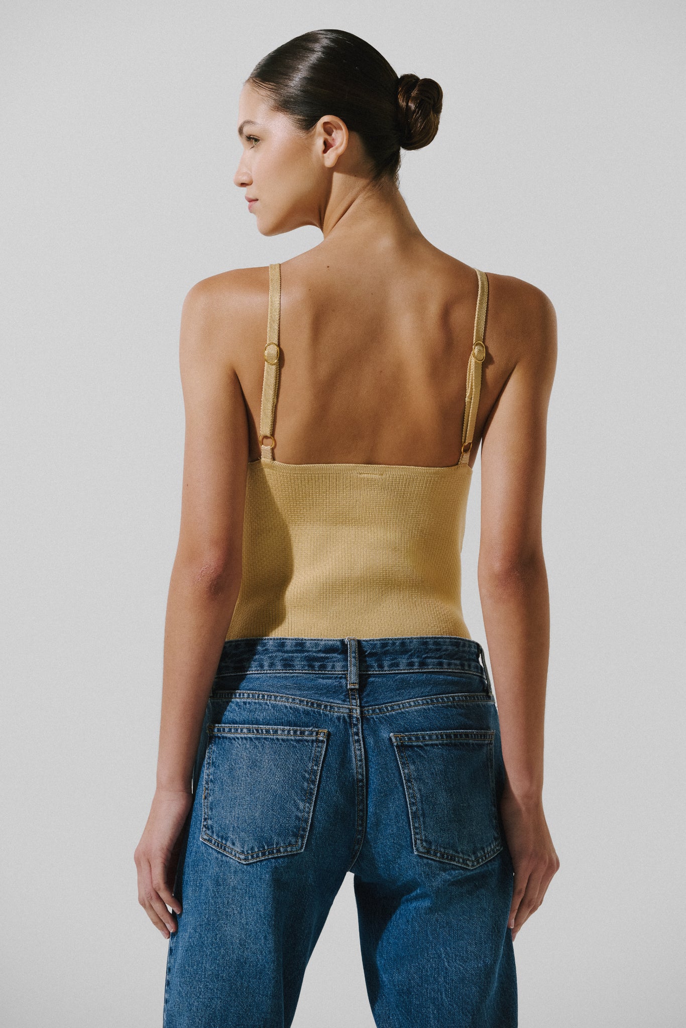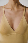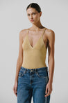 Introducing the "Rayo Bodysuit" in Sol - This classic yet elegant V-neck knit bodysuit is the perfect addition to elevate any look. With its simple yet carefully designed silhouette, it exudes sophistication and elegance, making it suitable for various occasions. Perfect for chilly summer nights or autumn, it is versatile and can be used to add warmth to your overall appearance.