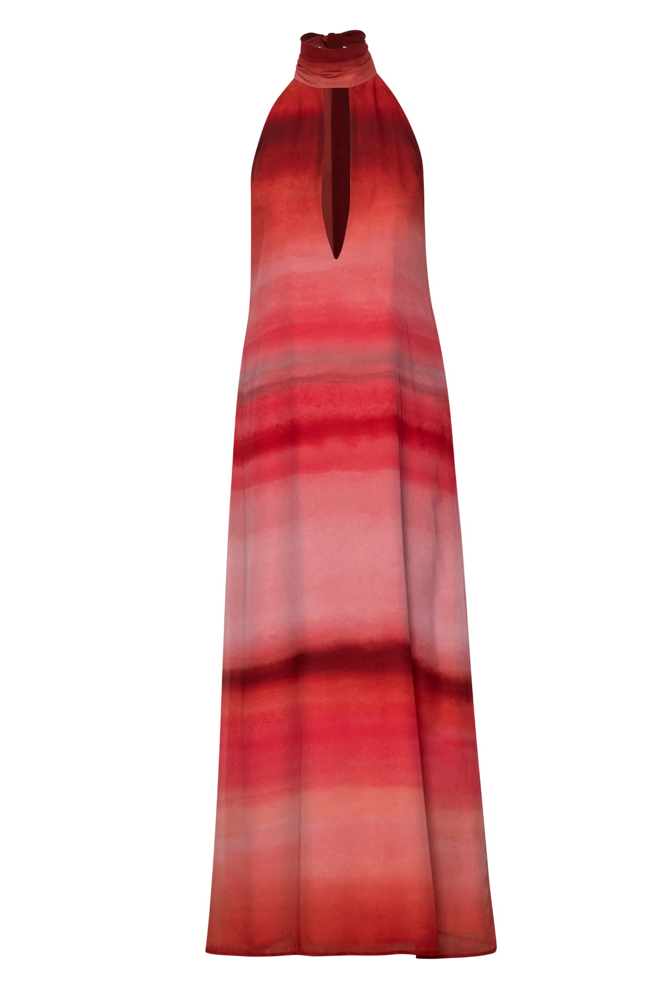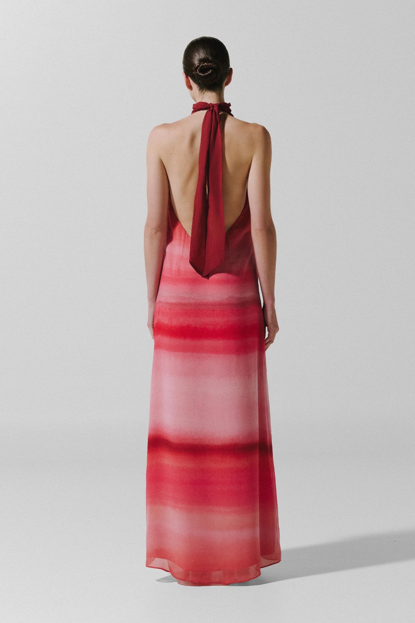 Introducing the “Magia Salvaje Maxi Dress” in Flor de Cantauta – a halter neckline design with an open back and self-tie straps for an adjustable fit. Features front cutouts and darts at the top for a flattering silhouette. Finished with a back zipper closure, fully lined construction, and maxi length.