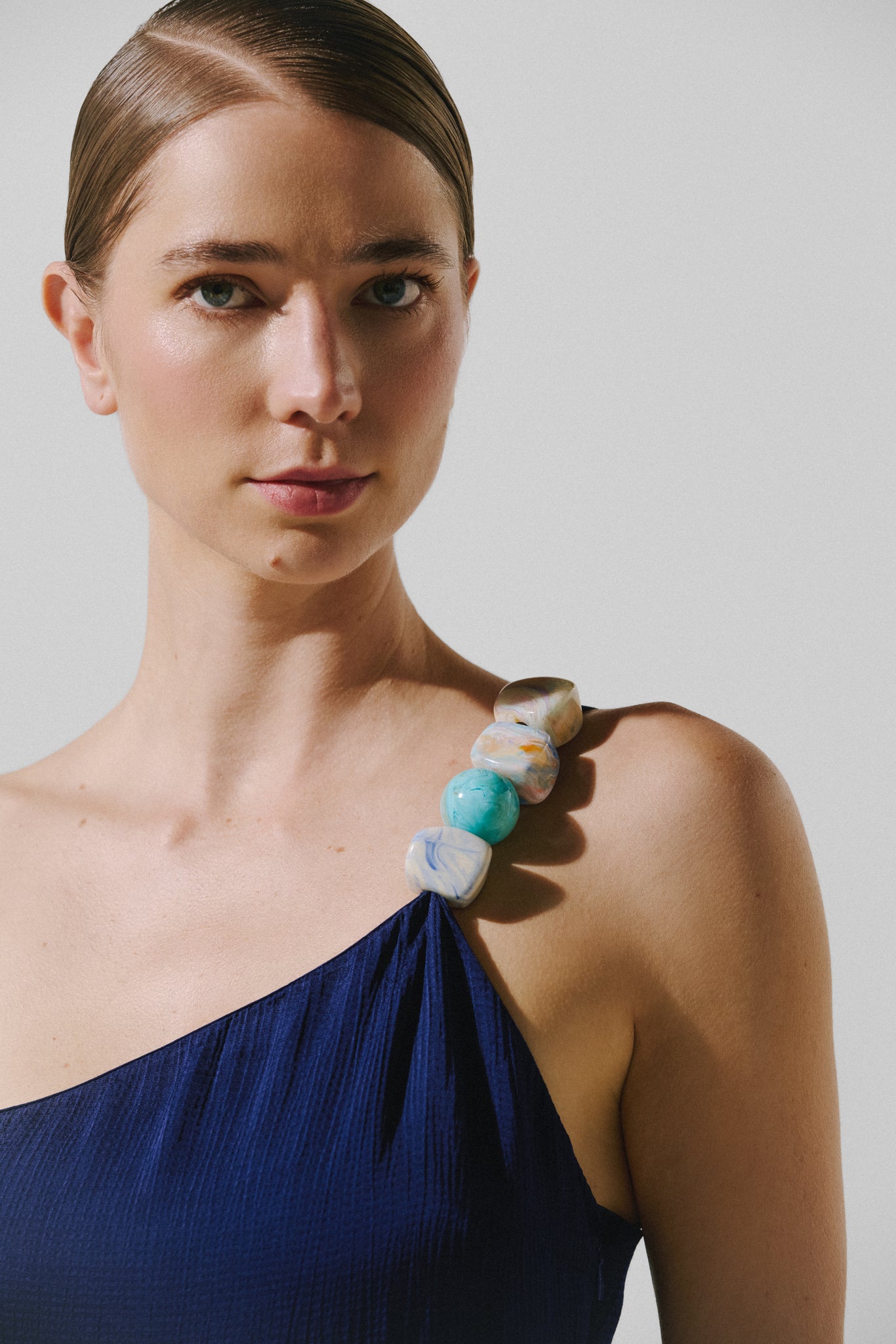Introducing the "Bellini Maxi Dress" in Flame – a one-shoulder silhouette with embellished details and adjustable strap. Shaped with darts on top and back, it features a side zipper closure and is fully lined in a maxi length.