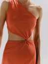 Introducing theÊ"Luana Dress" in Durazno - A true embodiment of elegant beauty. Crafted with meticulous attention to detail, this one-shoulder maxi dress radiates timeless style. Its lightweight fabric, flattering silhouette, and twisted top with two-toned detail on the back seamlessly combine casual beach walks with glamorous soirŽes. Immerse yourself in the enchanting fusion of high-end fashion and sustainability with this captivating masterpiece.