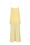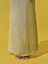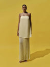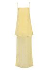 Introducing the "Noel Maxi Dress" in Butter – a square neckline silhouette with embellishments, top darts, and adjustable straps. Crafted in textured fabric and designed with a back slit and zipper closure. Partially lined and cut in a maxi length for ease of movement.