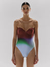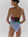 Introducing the "Bay One Piece" in Wines – a one-piece swimsuit with a heart-shaped neckline and darts on the top for shaping. Featuring a boning structure and padded cups, it is fully lined for added comfort and support.