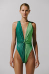 Introducing the "Lulu One Piece" in Kiwi – this sleek swimsuit features a deep neckline and a front knot detail, creating a flattering and modern look. The lined, non-padded design ensures comfort and support, making it an elegant choice for beach or poolside moments.