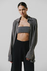 Introducing the "Chivi Top" in Disco - This captivating resort wear ensemble exudes grace and sophistication, showcasing meticulous artistry and a strong commitment to sustainability. This glossy bandeu top, when paired with the "Chivi Shirt" and "Chivi Bottom" in Disco, create a complete and stylish look. This three-piece set includes a bandeau top, a flowy shirt, and loose trousers, all in a glossy material. Elevate your beach-to-bar looks with our new favorite, the "Chivi Set."