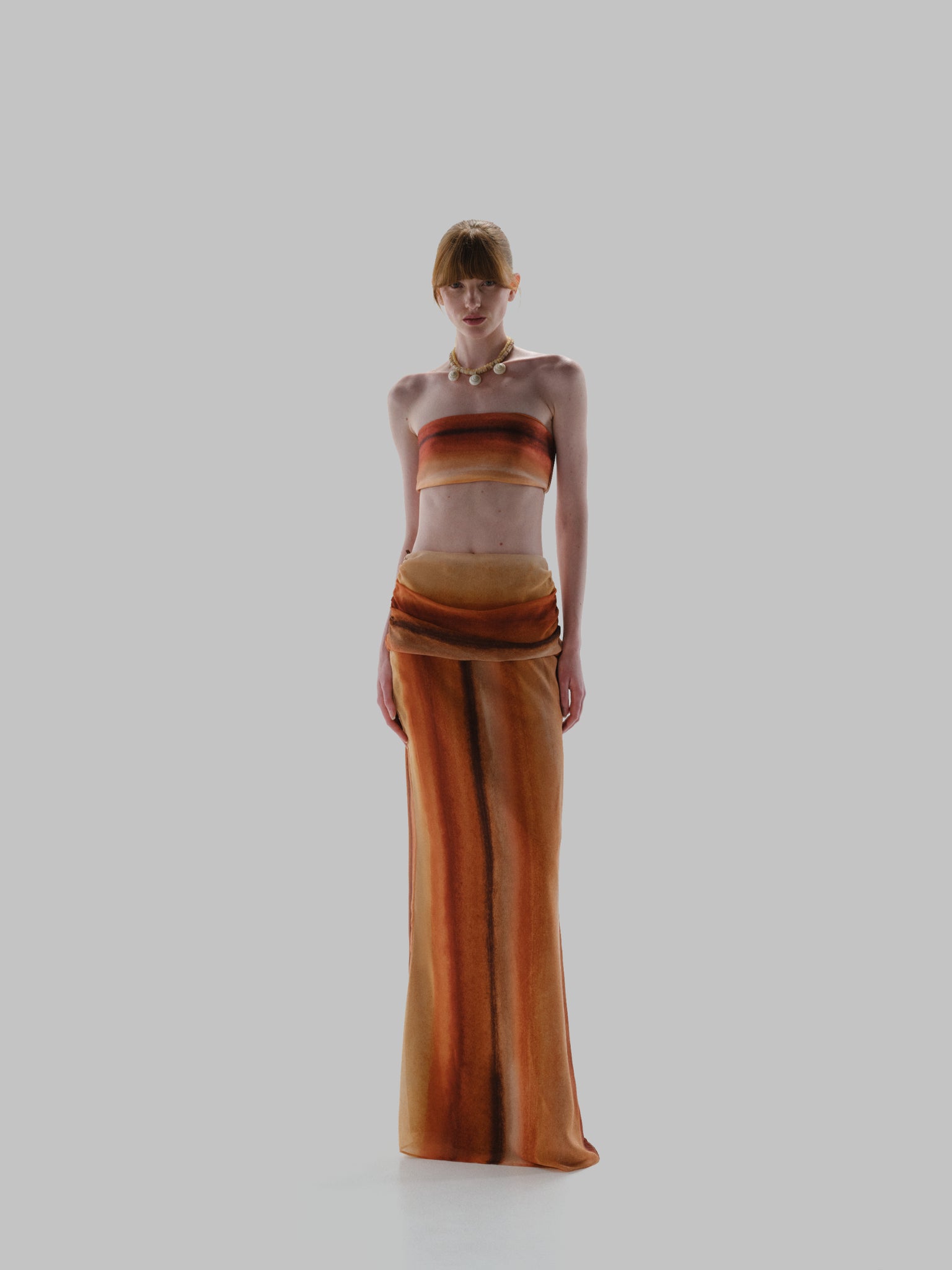 Introducing the “Sumaq Maxi” in Tierra Inca – a high-rise silhouette with elegant draping that enhances the figure. Designed with back darts for a flattering fit and a back slit for ease of movement. Finished with a back zipper closure, crafted in sheer fabric with lining, and cut in a flowing maxi length for a refined, statement look.