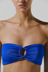 Introducing the "Nala Top" in Dory - Where luxury beachwear meets captivating design. Made from a lycra figure hugging glossy fabric, this strapless bikini top with hardware detailing at the front makes the perfect swim pick. Pair it with the "Nala Bottom" in DoryÊand elevate your beach experience creating a symphony of versatility, design, and conscious fashion.