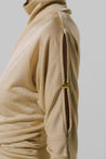 Introducing the "Amber Blouse" in Almendras – a striking cropped top that combines modern sophistication with unique flair. Featuring a high neckline and a fitted silhouette, this pleated design is enriched with Baobab-shaped details and ruched embellishments. The long sleeves, detailed with slits from cuff to elbow, add a bold edge. Pair it with the matching Amber Skirt for a coordinated look or style it with high-waisted pants for a chic, casual ensemble.