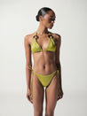 Introducing the "Kaia Bikini Bottom" in Pistacho – a high-cut design with self-tie straps and medium coverage. Fully lined for a comfortable, secure fit. Pair it with the matching top for a coordinated look.