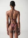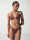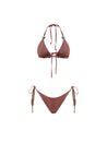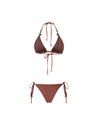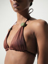 Introducing the "Kaia Bikini Top" in Coffee – a triangle design with self-tie straps, embellished with resin stones. Unpadded and without underwire, fully lined for a comfortable, natural fit. Pair it with the matching bottom for a coordinated look.