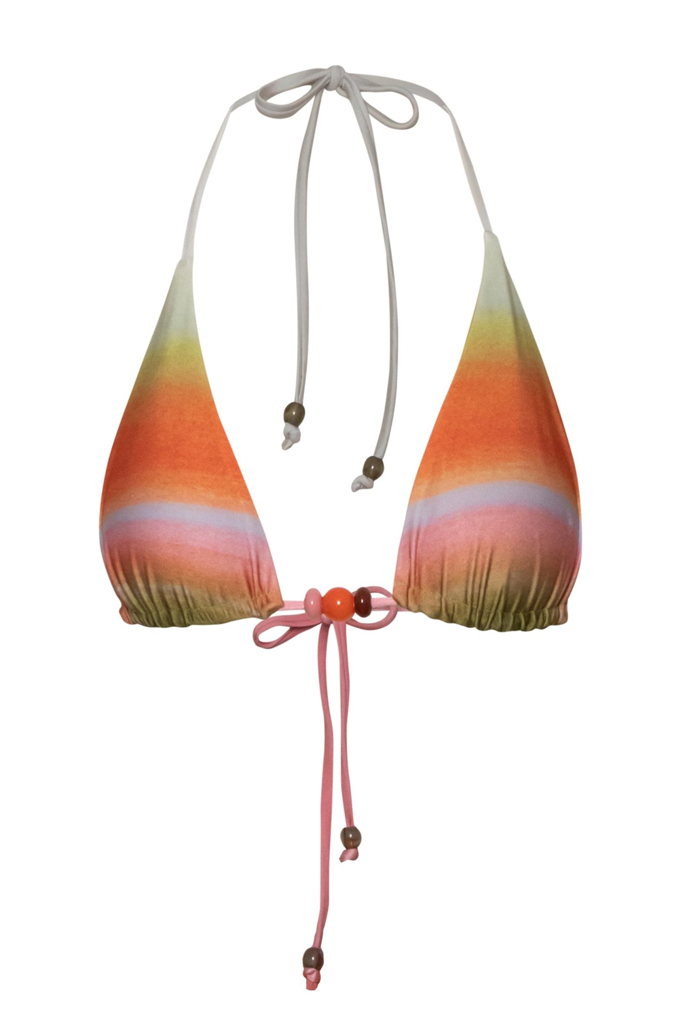 Introducing the “Kaia Bikini Top” in Valle Sagrado – a triangle silhouette with self-tie straps for an adjustable fit. Embellished with resin stones, it features a padded construction with no underwire for a natural feel. Fully lined for comfort and support. Pair it with the matching bottom for a coordinated look.