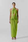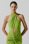 Introducing theÊ"Kena Dress" in Candi Ê- A true testament to elegant beauty. Made from a lycra figure holding glossy fabric, this high-neck cutout dress embodies timeless style. Its open back detail, flattering silhouette, and adjustable back straps effortlessly blend casual beach walk with glamorous soirŽes. Experience the enchanting fusion fashion and sustainability with this captivating dress.