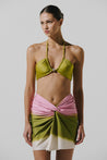 Introducing the "Maple Pareo" in Blushing – this high-waisted mini pareo features a front knot detail, creating a playful and asymmetrical look. The front slit adds a touch of allure, making it the perfect, chic layering piece for your swimsuit, ideal for effortless elegance by the beach.