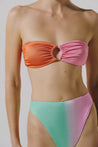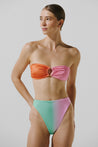 Introducing the "Nala Top" in Carmes’ - Where luxury beachwear meets captivating design. Made from a lycra figure hugging glossy fabric, this strapless bikini top with hardware detailing at the front makes the perfect swim pick. Pair it with the "Nala Bottom" in Carmes’ and elevate your beach experience creating a symphony of versatility, design, and conscious fashion.