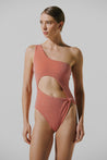 Introducing theÊ"Nikka One Piece" in Mandarine- A sustainable swimwear essential. Made from a figure-hugging stretchy fabric, this one-shoulder maillot with cutouts embodies resort elegance. Its timeless design, bright color, and flattering silhouette elevate your summer wardrobe. Pair it with the "Nikka Cover Up" for the perfect beach-to-bar look.