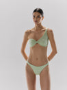 Introducing the "Ola Bottom" in Menta - Where luxury beachwear meets captivating design. Made from a figure-holding fabric with glossy details, this high-waist bikini bottom makes the perfect swim pick. Pair it with the "Ola Top" and "Mia Glossy Pareo" in Lime to create the perfect beach-to-bar look.