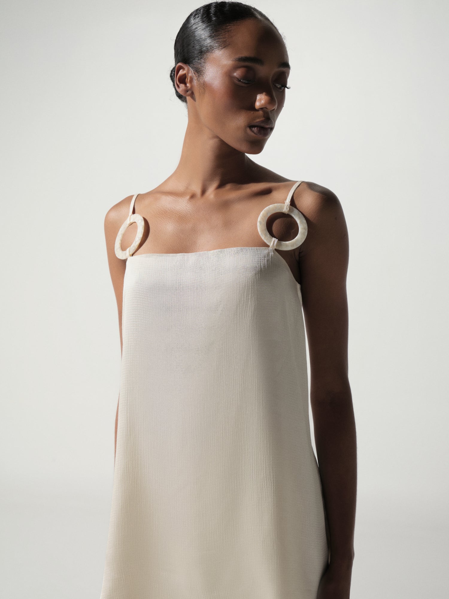 Introducing the "Porto Top" in Ivory – a top with a square neckline, adjustable straps, and a delicate lace overlay. Embellished for added detail, it is fully lined for coverage. Pair with matching pieces for a complete look.