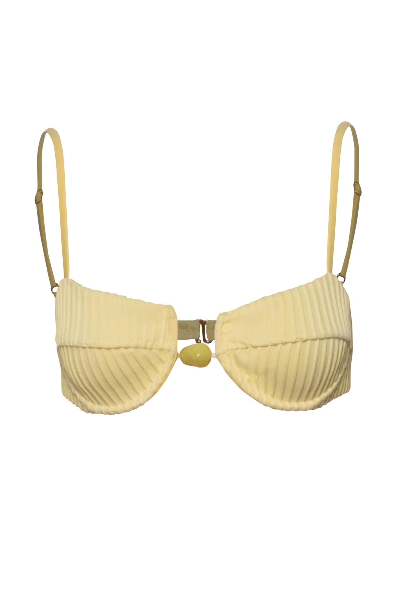 Introducing the “Roma Bikini Top” in Sol de Cusco – a balconette neckline design with adjustable straps for a customized fit. Embellished with resin stones, it features padded cups and underwire for enhanced support and shape. Finished with a back hook closure, crafted in textured fabric, and fully lined for comfort. Pair it with the matching bottom for a coordinated look.